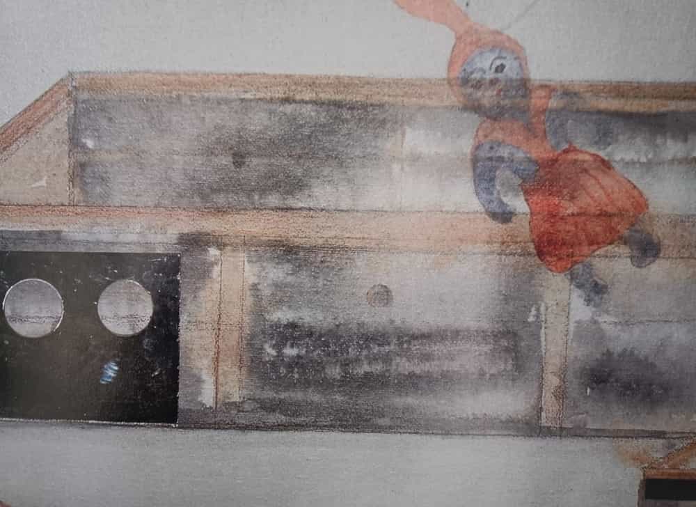 Santa: The Memorable Laboratory - I have constructed a wooden box measuring 8 feet by 2 feet by 2 feet. Inside this box, I placed 18 small boxes of various shapes, such as triangles, rectangles, and cubes. These small boxes are attached to one side of the wooden box, while the inside walls are fitted with mirrors. This setup allows for the reflection of all sides of the objects placed inside. Additionally, I drilled 22 holes on both the small boxes and the surface of the main box, acting as eyepieces. These small boxes are stacked on top of each other, creating different layers through which light enters and is reflected by the mirrors, resulting in a dramatic effect. The ambiguity arises because an object viewed through one eye hole may appear distant or proximate, and its angles and perspectives may vary. I incorporated various elements such as nail polish, lipstick, mirrors, dolls, earrings, necklaces, needles, letters, child paintings, bras, sanitary napkins, shells, and beads. These objects represent facets of every woman's world. What makes it memorable is the reflection with oneself. The self is mirrored myriad times through the ordinary objects of a woman's world. The analogy between the body and objects turns it into a laboratory where different parts are detailed, each with its own story. These objects, though mundane in the real world, become experimental in their reflection and multiplication, raising questions about constructed reality. The attempt was to question the authenticity of the cultured vision and why certain objects hold different reverence than others in various contexts. The reflections themselves create a vision and image that both authenticate and subjugate, forming a hierarchical structure. The Memorable Laboratory organizes the self, redefining it through its real and illusionary reflections. It expresses itself not confined within the box but allows the audience to peek into a separate world.